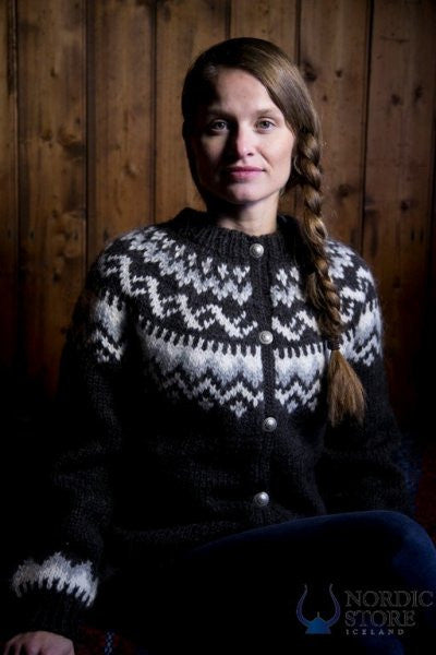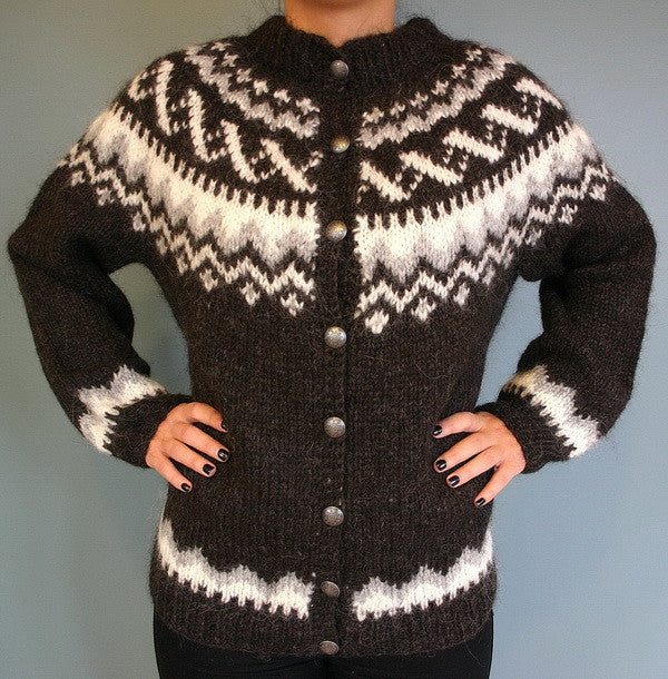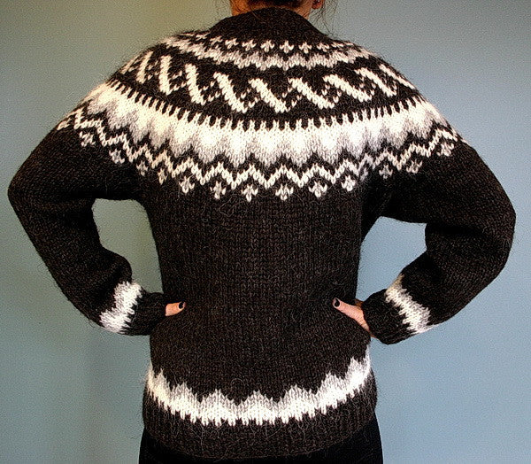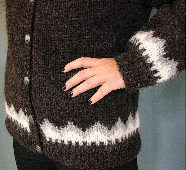 Black wool sweater cardigan. Hand knitted from 100% Iceland wool yarn.