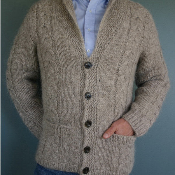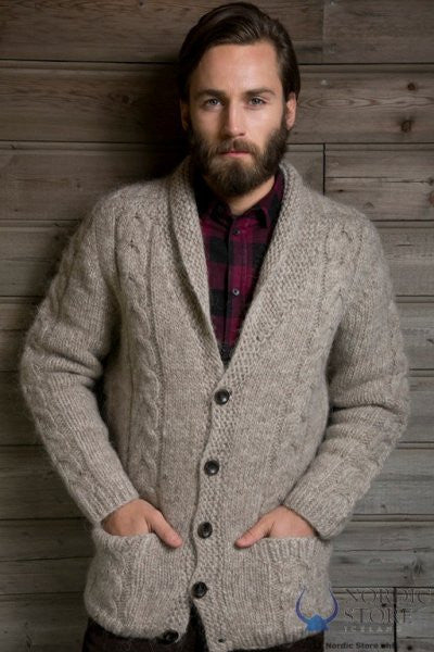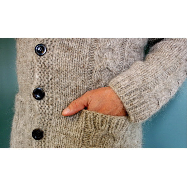 Beige chunky wool sweater jacket. Hand knitted from 100% Iceland wool yarn.